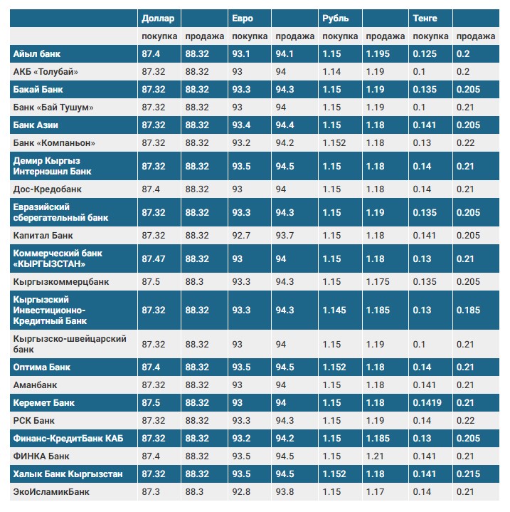 Курс доллара в коммерческих банках Кыргызстана на 6 марта