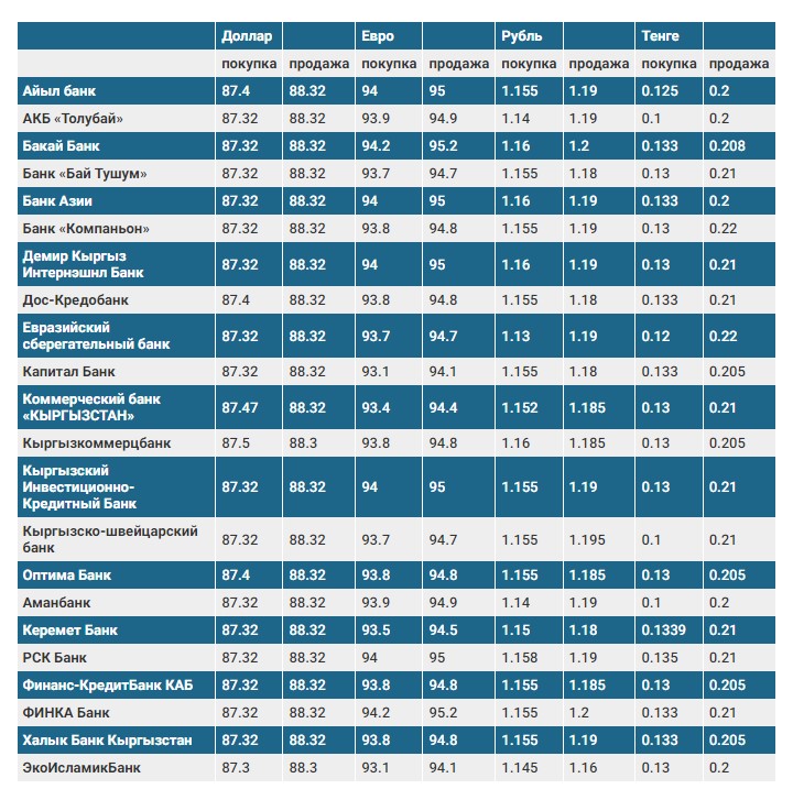 Курс доллара в коммерческих банках Кыргызстана на 14 марта