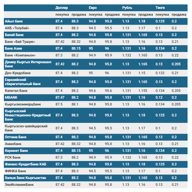 Курс доллара в коммерческих банках Кыргызстана на 29 марта