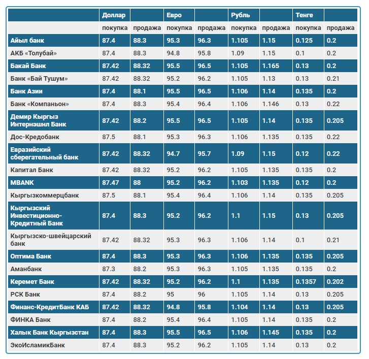 Курс доллара в коммерческих банках Кыргызстана на 4 апреля
