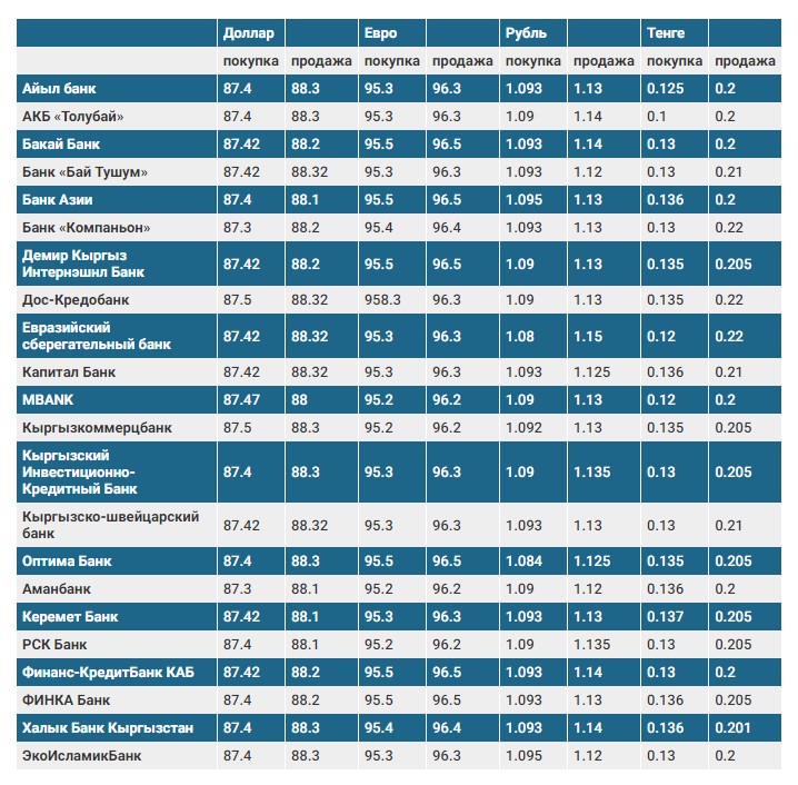 Курс доллара в коммерческих банках Кыргызстана на 6 апреля