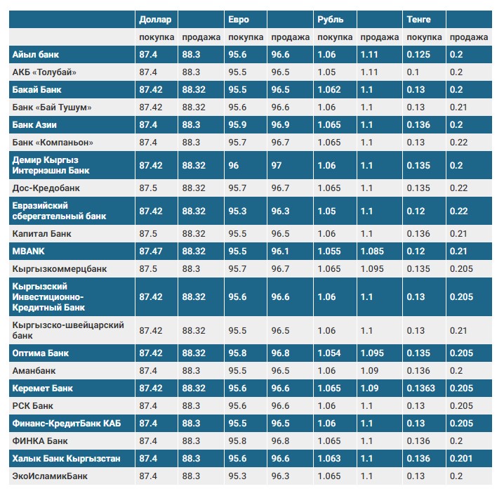 Курс доллара в коммерческих банках Кыргызстана на 12 апреля