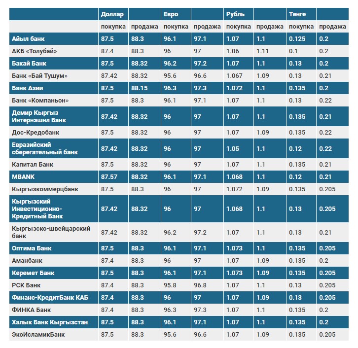 Курс доллара в коммерческих банках Кыргызстана на 19 апреля