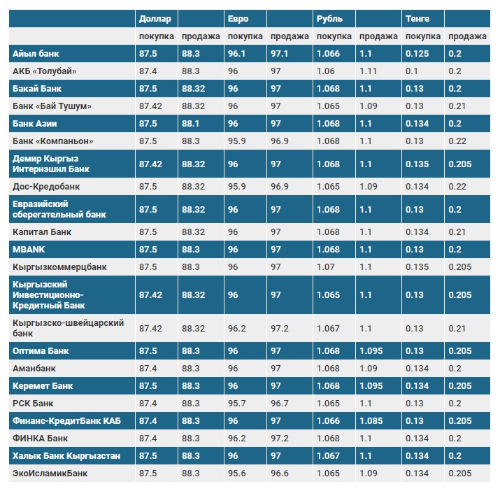 Курс доллара в коммерческих банках Кыргызстана на 20 апреля