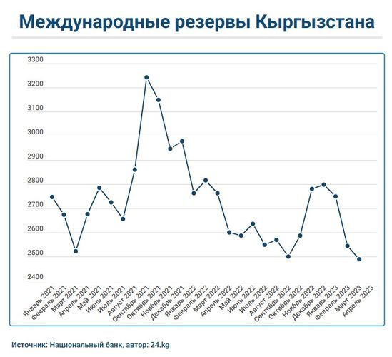 По итогам апреля 2023 года валовые международные резервы Кыргызстана достигли $2 миллиардов 338,19 миллиона. Об этом сообщил сайт Национального банка.
