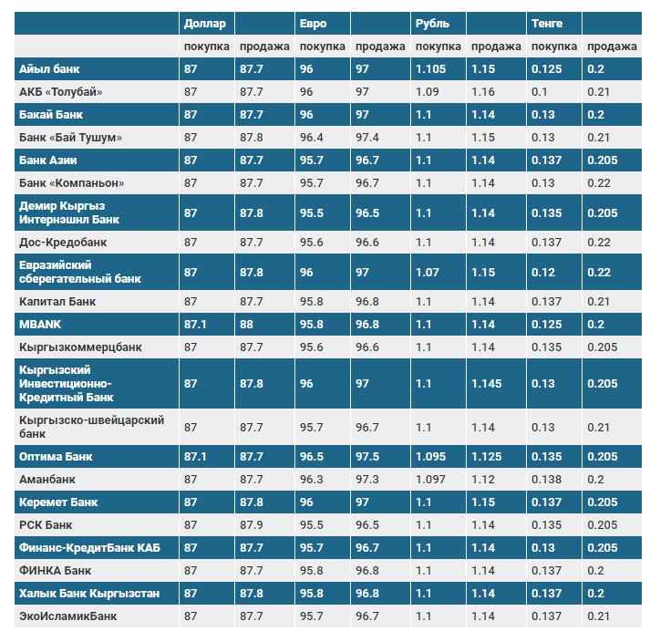 Курс доллара в коммерческих банках Кыргызстана на 10 мая
