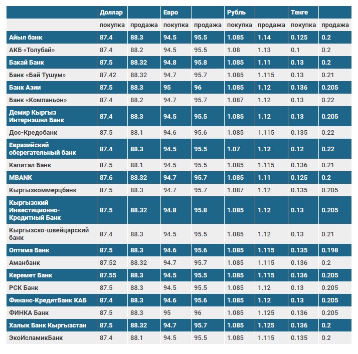 Курс доллара в коммерческих банках Кыргызстана на 22 мая