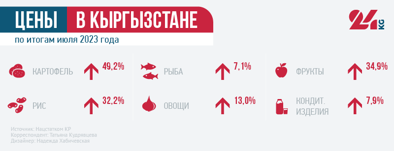 По итогам июля повышение цен отмечено во всех регионах республики. Исключение составила только Чуйская область, где цены снизились на 0,2 процента.