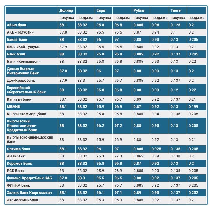 Курсы указаны для наличного обмена валюты. Данные получены с сайтов коммерческих банков. В случае возникновения вопросов о предоставленных сведениях следует обращаться непосредственно в комбанки.