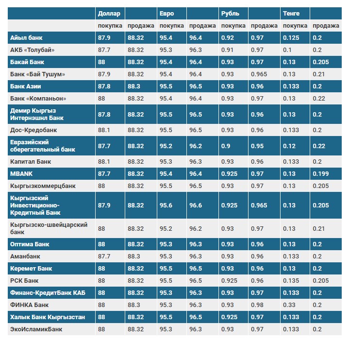Курс доллара в коммерческих банках Кыргызстана на 18 августа