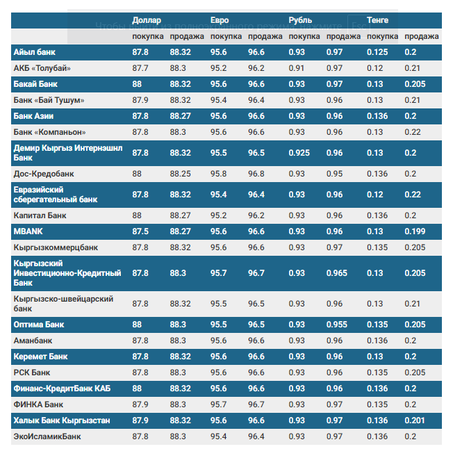 Курс доллара в коммерческих банках Кыргызстана на 22 августа
