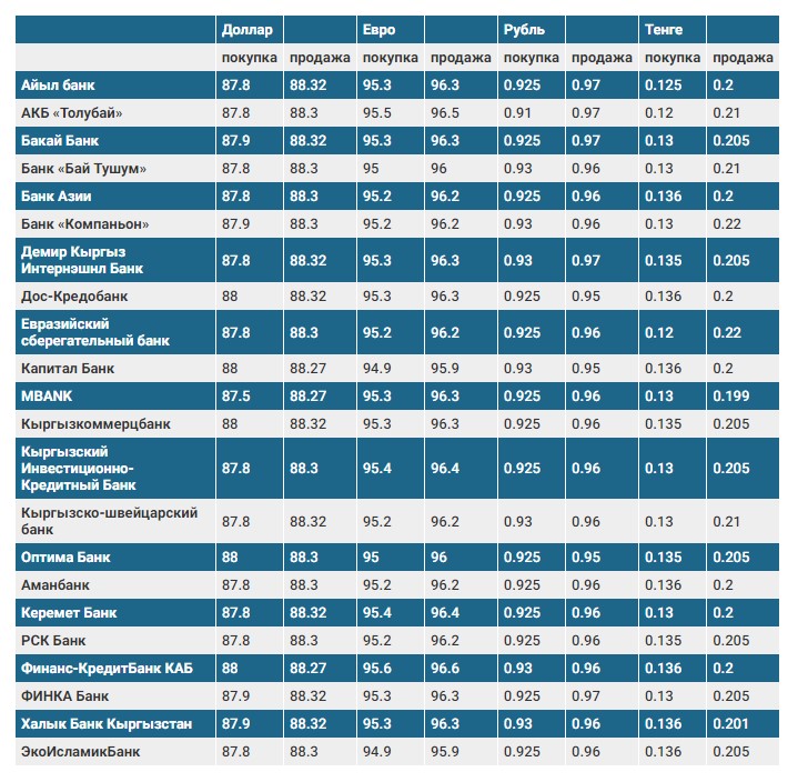 Курс доллара в коммерческих банках Кыргызстана на 23 августа