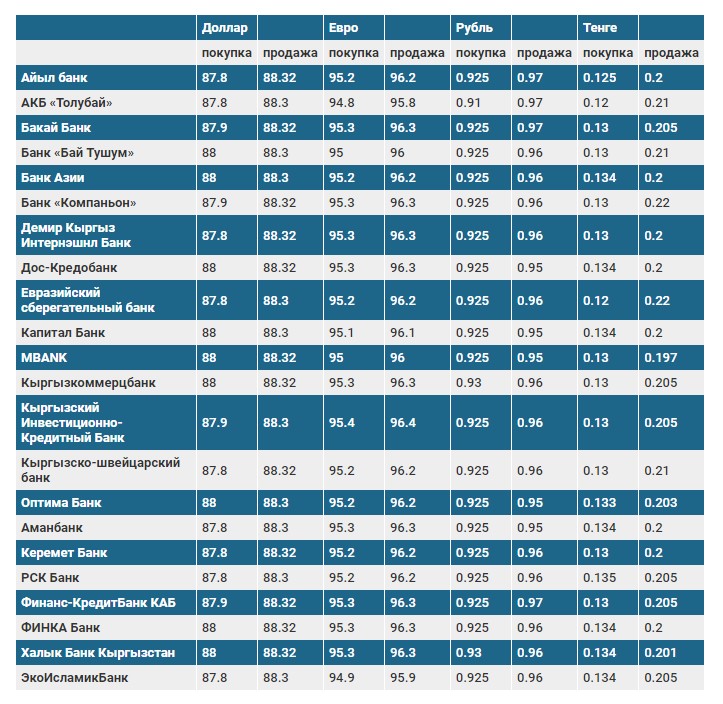 Курс доллара в коммерческих банках Кыргызстана на 24 августа