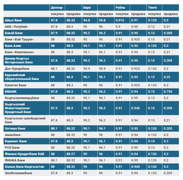 Курс доллара в коммерческих банках Кыргызстана на 1 сентября