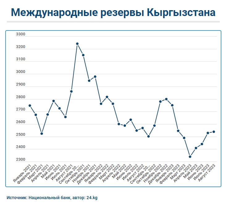 По итогам августа 2023 года валовые международные резервы Кыргызстана достигли $2 миллиардов 537,21 миллиона. Об этом сообщается на сайте Национального банка.