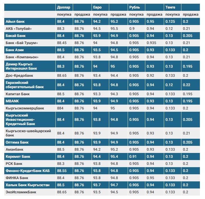 Курс доллара в коммерческих банках Кыргызстана на 15 сентября