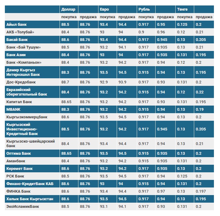 Курс доллара в коммерческих банках Кыргызстана на 26 сентября