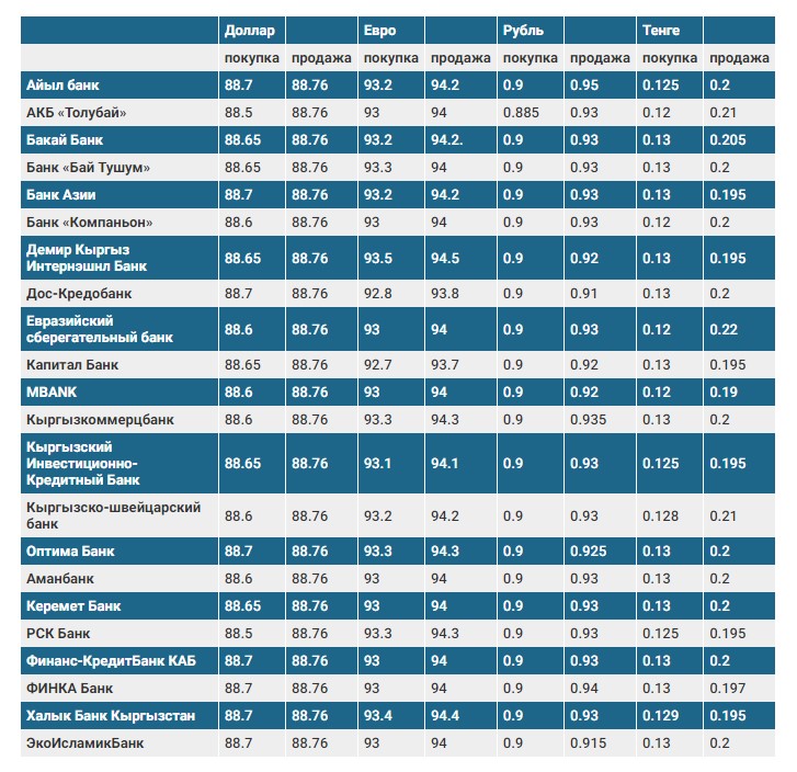 Курс доллара в коммерческих банках Кыргызстана на 2 октября