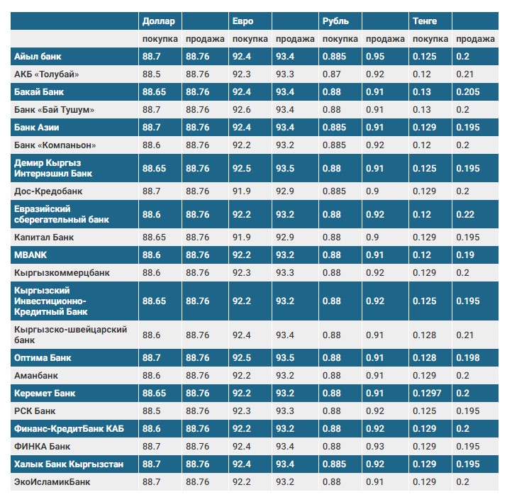 Курс доллара в коммерческих банках Кыргызстана на 3 октября