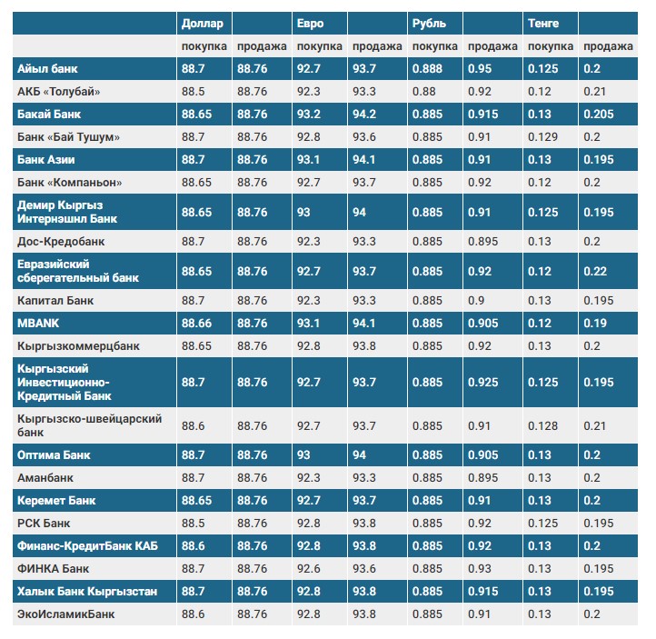 Курс доллара в коммерческих банках Кыргызстана на 5 октября