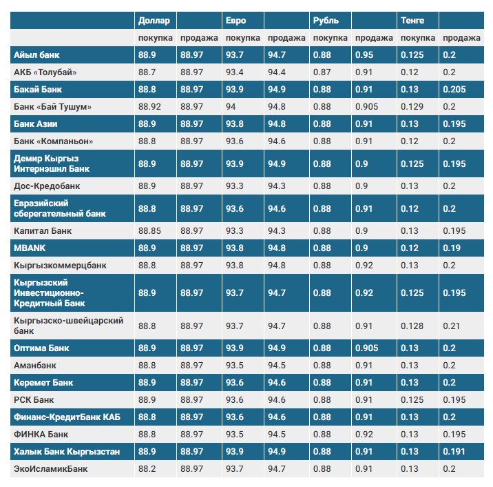 Курс доллара в коммерческих банках Кыргызстана на 11 октября