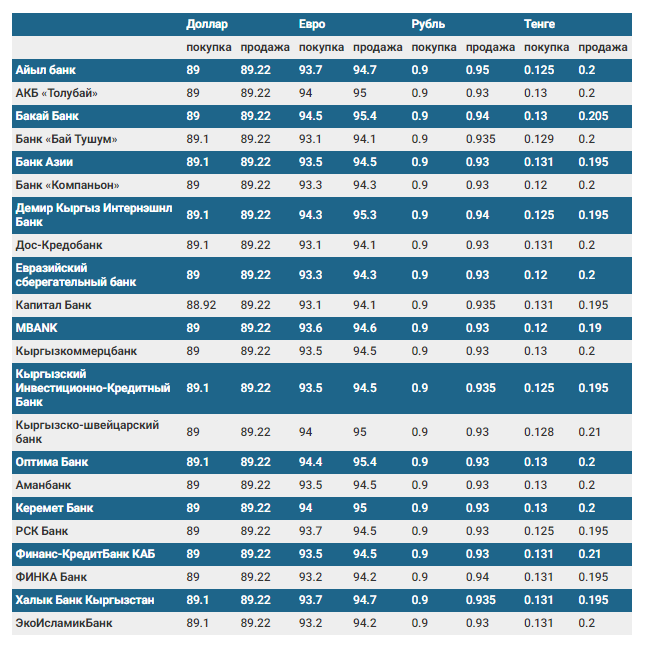 Курс доллара в коммерческих банках Кыргызстана на 13 октября