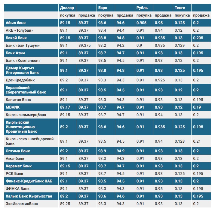 Курс доллара в коммерческих банках Кыргызстана на 17 октября