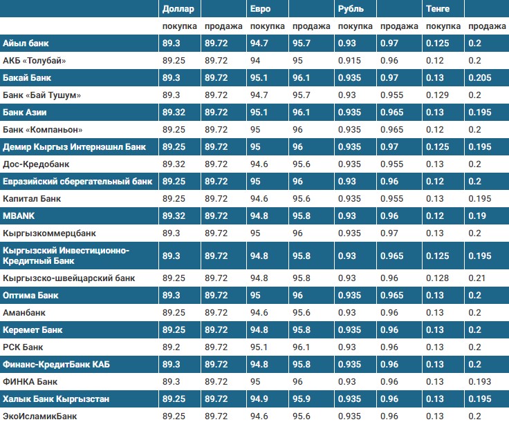 Курс доллара в коммерческих банках Кыргызстана на 24 октября