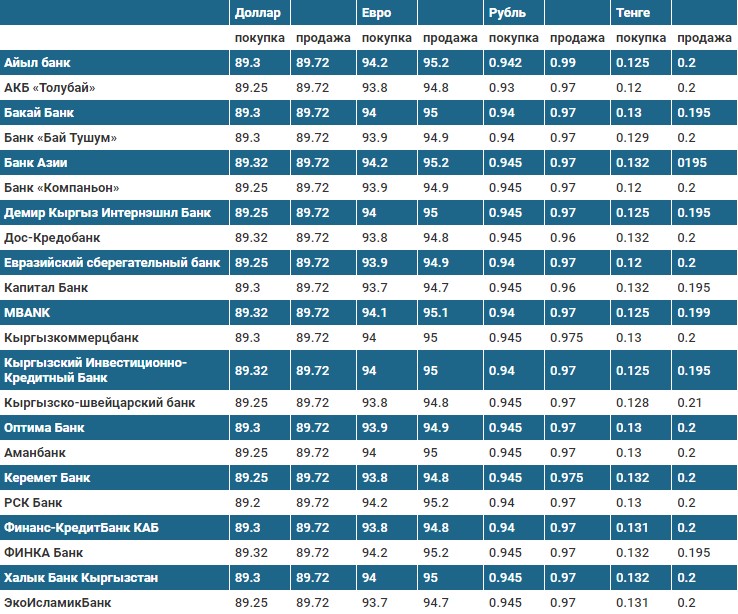 Курс доллара в коммерческих банках Кыргызстана на 30 октября