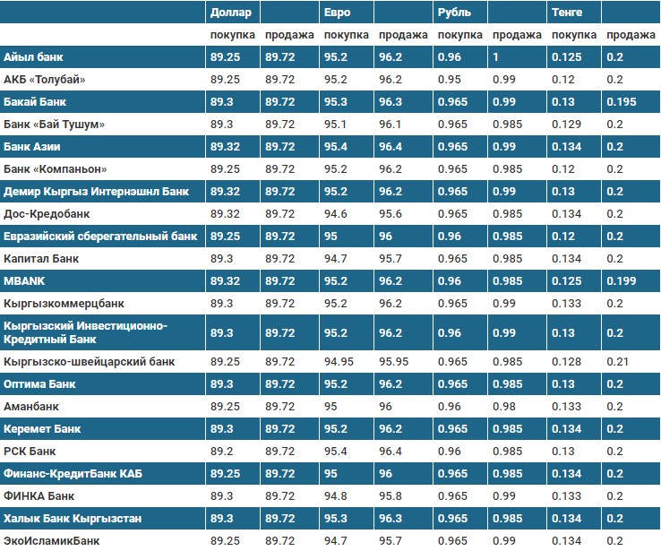 Курс доллара в коммерческих банках Кыргызстана на 14 ноября