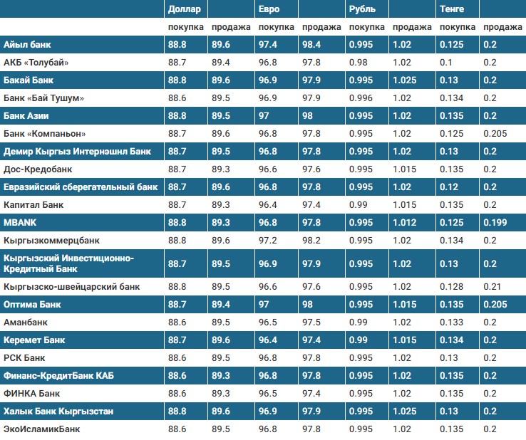 Курс доллара в коммерческих банках Кыргызстана на 28 ноября