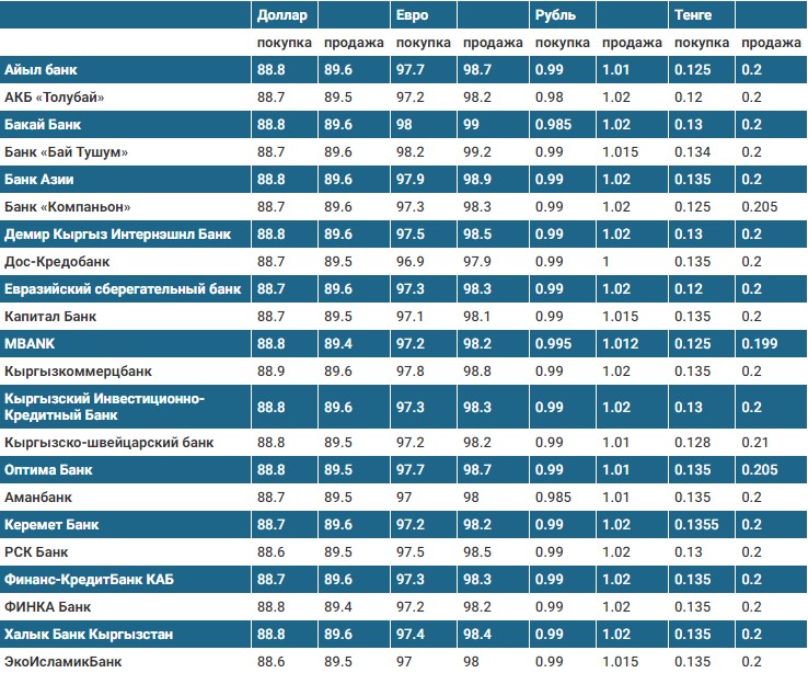 Курс доллара в коммерческих банках Кыргызстана на 29 ноября