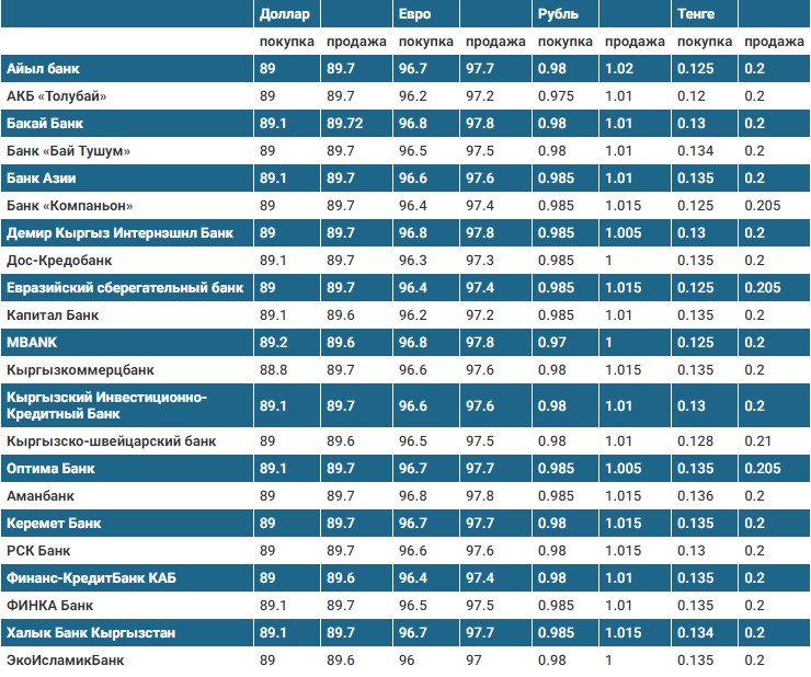 Курс доллара в коммерческих банках Кыргызстана на 4 декабря
