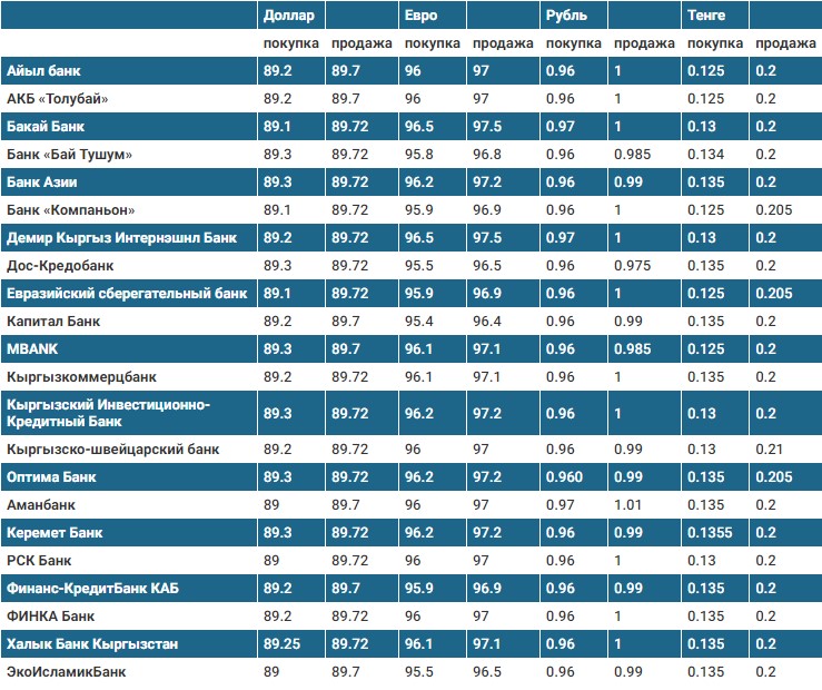 Курс доллара в коммерческих банках Кыргызстана на 6 декабря