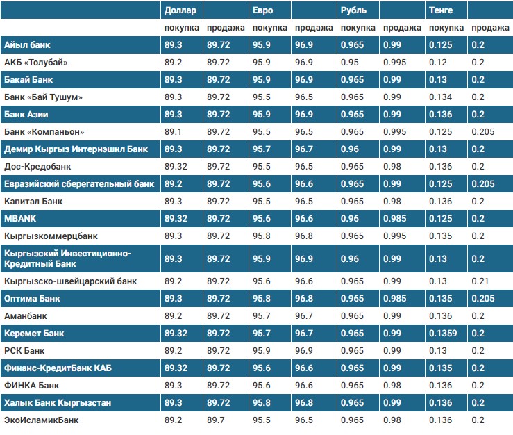 Курс доллара в коммерческих банках Кыргызстана на 11 декабря