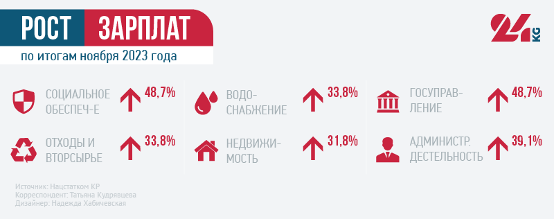 По данным Нацстаткома, средняя заработная плата в стране достигла 32 тысяч 174 сомов.