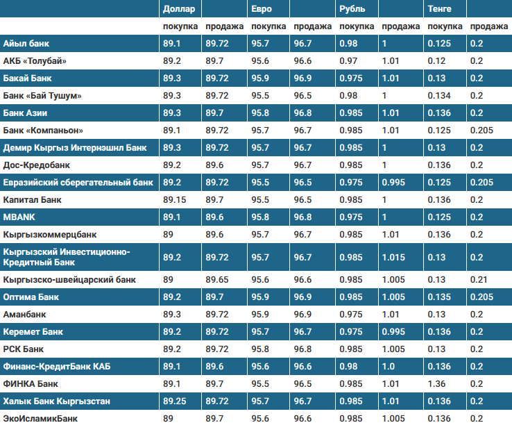 Курс доллара в коммерческих банках Кыргызстана на 13 декабря