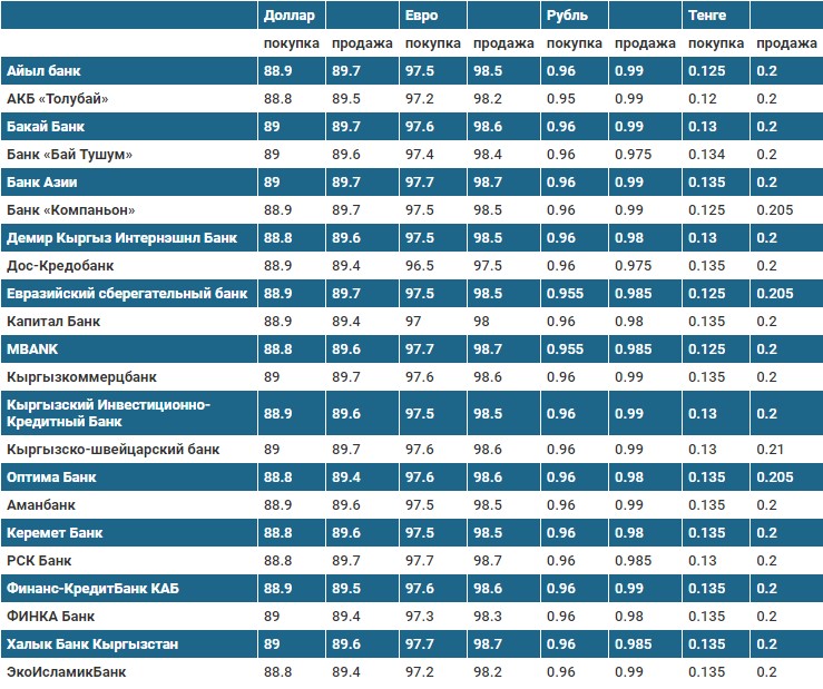 Курс доллара в коммерческих банках Кыргызстана на 25 декабря