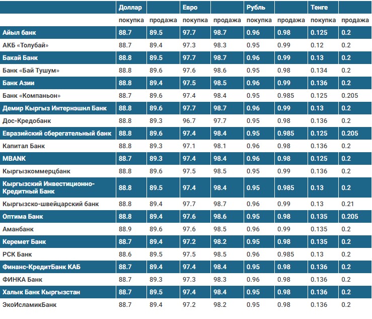 Курс доллара в коммерческих банках Кыргызстана на 27 декабря