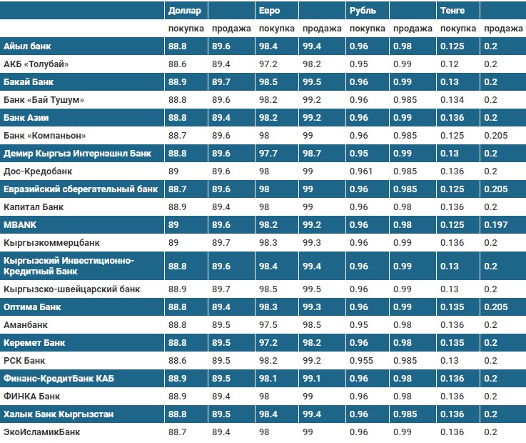 Курс доллара в коммерческих банках Кыргызстана на 28 декабря