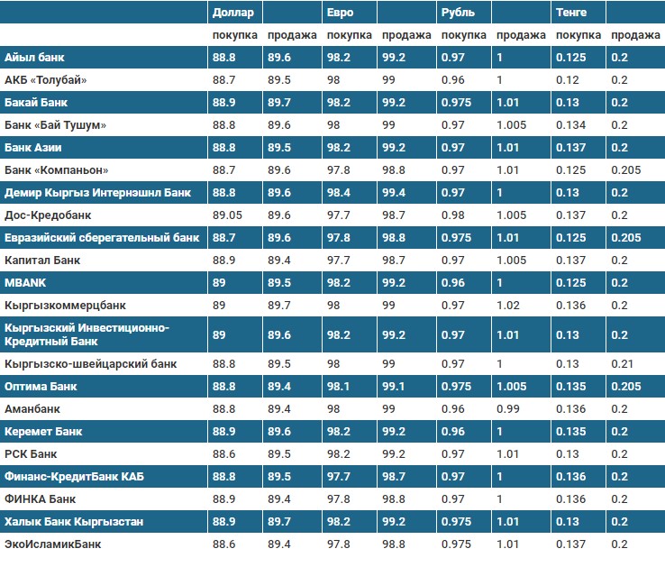 Курс доллара в коммерческих банках Кыргызстана на 29 декабря