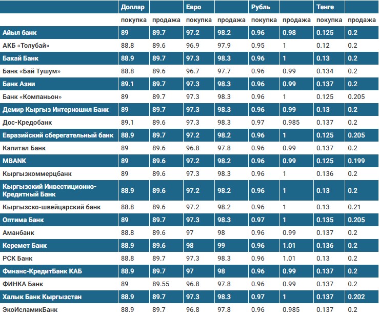 Курс доллара в коммерческих банках Кыргызстана на 9 января