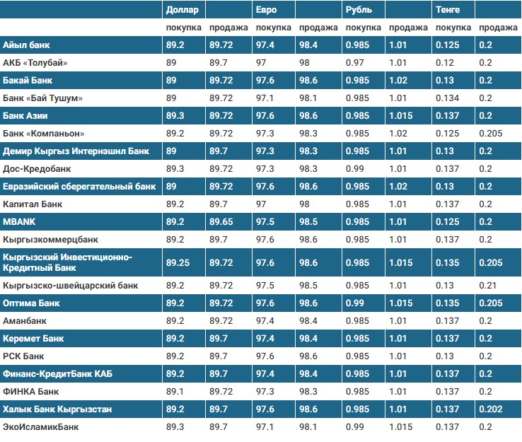 Курс доллара в коммерческих банках Кыргызстана на 11 января