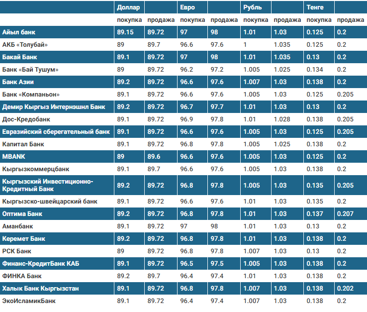 Курс доллара в коммерческих банках Кыргызстана на 17 января