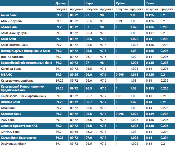 Курс доллара в коммерческих банках Кыргызстана на 24 января