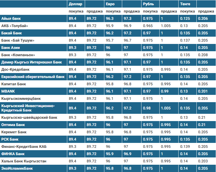 Курс доллара в коммерческих банках Кыргызстана на 13 февраля