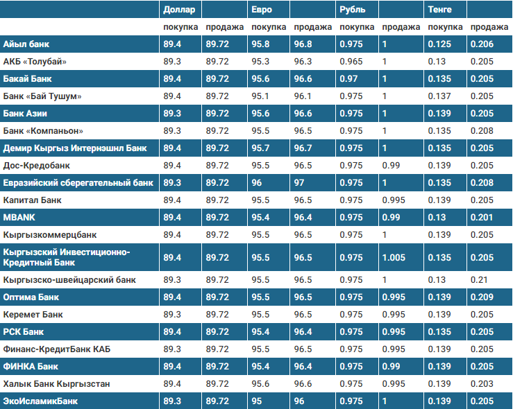 Курс доллара в коммерческих банках Кыргызстана на 14 февраля