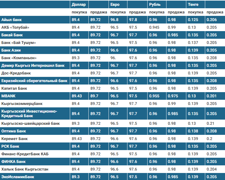 Курс доллара в коммерческих банках Кыргызстана на 27 февраля