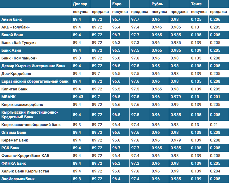 Курс доллара в коммерческих банках Кыргызстана на 28 февраля