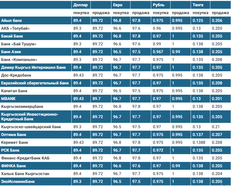 Курс доллара в коммерческих банках Кыргызстана на 6 марта